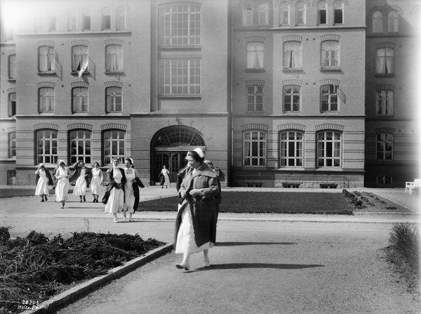 | − | [[Fil:Ullevål sykehus.jpg|miniatyr|600x600pk|'' | + | [[Fil:Ullevål sykehus 1926.jpg|miniatyr|600x600pk|''Sykepleiere ute på gårdsplassen foran Søsterhjemmet på Ullevål sykehus i 1926. Foto: Ander Beer Wilse / Oslo Museum'']] |