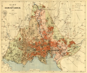 [[Fil:Kart_over_Kristiania_1887.jpeg|miniatyr|center 750px|Kart over Kristiania. Bilag til Femtiaars-Beretning om Christiania Kommune. Målestokk 1:15 000. Utgitt av Kristiania oppmålingsvesen. Oslo Byarkiv]]