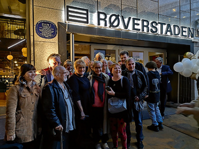 | + | [[Fil:Røvedstaden Blått skilt.jpg|miniatyr|400x400pk|Avduking av blått skilt over Club 7 i juni 2019. Kulturminister Trine Skei Grande (V) dro i snora. Foto: Oslo Byes Vel]] | ||