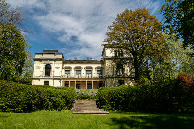 Det Norske Videnskaps-Akademi sett fra hagen. Foto: Astrid Ledang / Oslo Byleksikon