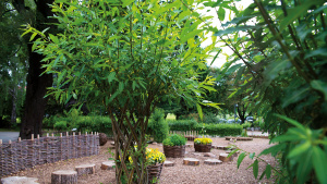 The Willow Garden is suitable for children playing. Fences, tunnels and sculptures have been made from many types of willow. The new Climate House is being built just behind, due to open in a few months.